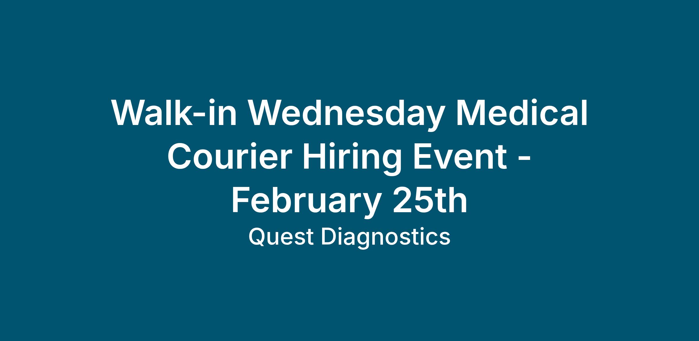 Please bring a resume and join us to learn about our open medical courier positions and a career with Quest Diagnostics!
